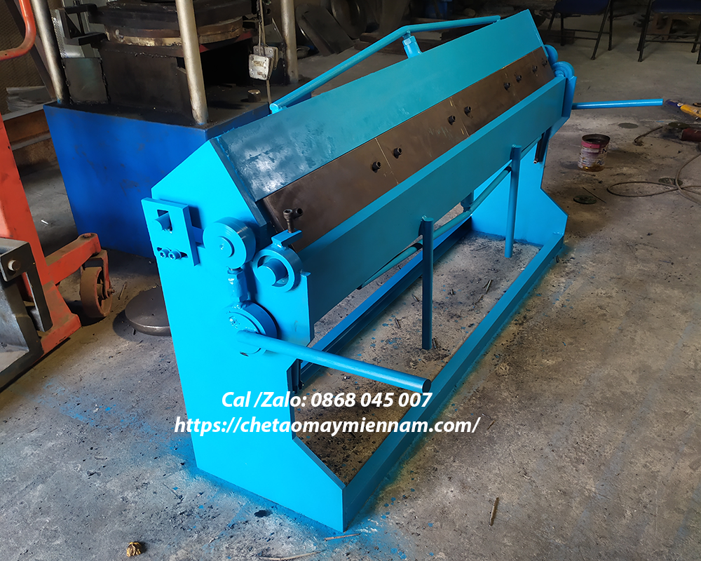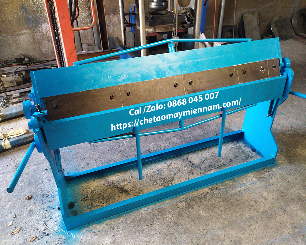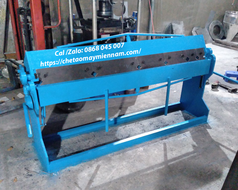 - MÁY BẺ TÔN - MÁY GẤP TÔN - MÁY BẺ TÔN BẰNG TAY - 0868 045 007 - CHẾ TẠO MÁY MIỀN NAM. Máy bẻ tôn bằng tay - máy gấp tôn bằng tay. Máy gấp tôn bằng tay - may gap ton - may be ton - máy bẻ tôn. Máy gấp tôn tay được sử dụng rộng rãi nhất và sử dụng trong sản xuất ống gió, gấp cạnh trong các tủ, bàn ghế inox, xe hủ tiếu, bánh mì.. Máy gấp tôn dùng trong việc gia công tôn tấm, gấp mép, góc với các loại tôn, hay tấm kim loại. Là loại máy gấp bằng tay nên sử dụng và vận hành khá đơn giản. Máy có kết cấu khung chắc chắn, các chi tiết được bố trí hợp lý cho người sử dụng sao cho tốn ít lực nhất. Mặt có các vít điều chỉnh cho phép gấp các loại tôn có chiều dài khác nhau. Cóc tăng cường, tăng độ bền máy và chất lượng đường gấp, Chi phí đầu tư ban đầu thấp.