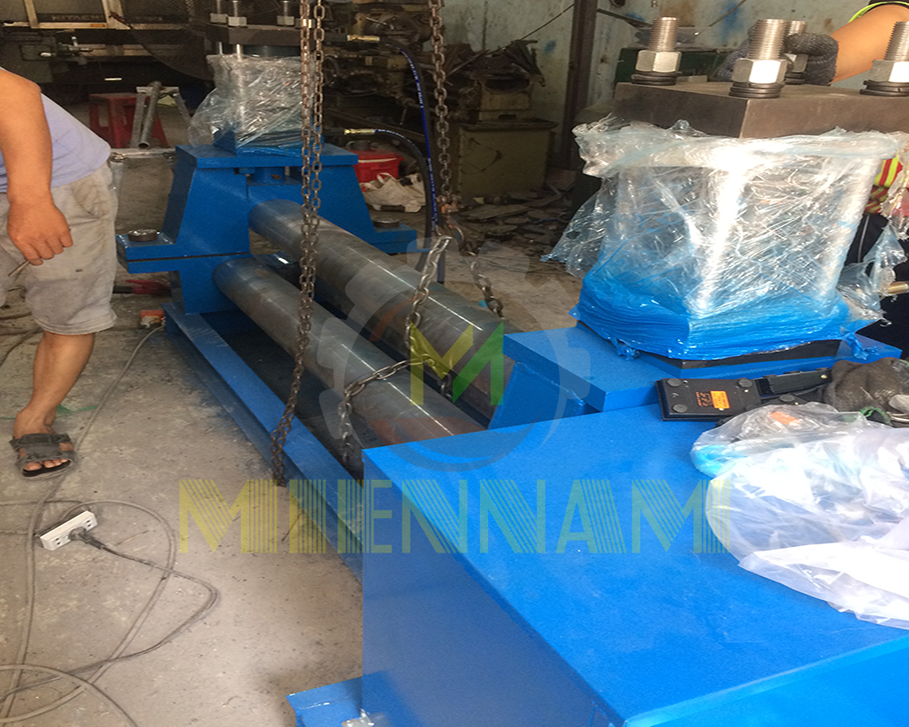 Các trục dưới được lắp đối xứng tương ứng với trục trên, truyền động cơ được sử dụng để truyền động cho các trục dưới. Trục trên được nâng lên hạ xuống tại đường chuẩn đối xứng tâm của các trục dưới, bằng truyền động thuỷ lực. Trục dưới dịch chuyển đảo chiều để phục vụ cho các công đoạn uốn.